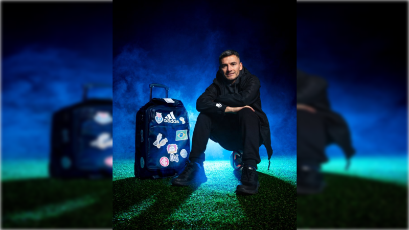 Uno de ellos, el de la bienvenida, incluye una imagen de Aránguiz junto al bolso con el que llega al CDA. El implemento está adornado con stickers que aluden a la trayectoria del jugador y a sus principales logros. Aparecen, por ejemplo, la Copa Sudamericana, que obtuvo con la U, y la Copa América y la Copa América Centenario, que logró con la Selección. También hay una bandera de Brasil y las insignias de Internacional de Porto Alegre, el Bayer Leverkusen y el 04 que alude al año de fundación del club alemán.
