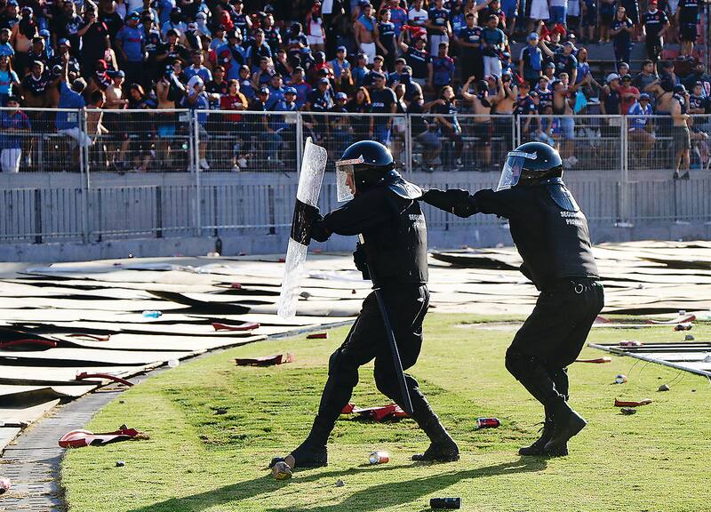 Y es curioso, pero al parecer la presencia de ellos sí ayuda a controlar a las masas en las gradas. El último hecho grave de desórdenes y violencia dentro del estadio se vivió el pasado 16 de febrero, en el clásico entre Colo Colo y Universidad Católica. Allí, serios incidentes se registraron en los sectores Cordillera y Arica, donde hubo avalanchas para ingresar al Monumental, saqueo a locales de comida, fuegos artificiales a la cancha y destrucción. Y justo en ese duelo, no había robocops en el estadio. Otro ejemplo ocurrió el martes en San Carlos de Apoquindo. Ahí, en el duelo entre la UC y América de Cali, hinchas visitantes y locales se enfrentaron a golpes y, al final, varios colombianos ingresaron a la cancha, escapando de los golpes que algunos fanáticos cruzados les dieron en la tribuna Alberto Fouillioux. Ese mismo día, una decisión de Carabineros no los dejó trabajar, por incumplimiento de protocolos, según explican desde Estadio Seguro.