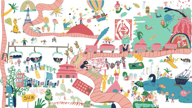 La muestra lleva por título “El Mundo que sueño: vivencias en cuarentena”, donde 240 niños y jóvenes pintaron 317 dibujos reunidos en siete grandes cuadros inspirados en temáticas de la cuarentena.