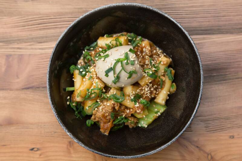 También Los dan dan ($ 6.000), noodles en salsa de sésamo y pimienta sechuán, aceite aromático picante y sofrito de cerdo con acelga y maní. Y lo puedes pedir en versión vegana si es que quieres.