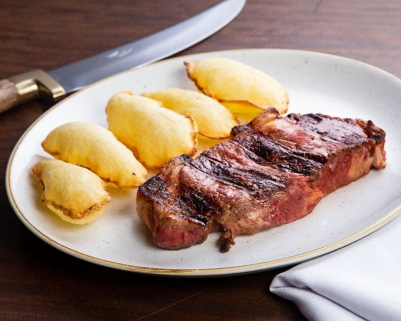 Y seguir luego con alguna de las alternativas de corte premium, como el bife de chorizo ($ 16.900), 340 gramos de este corte clásico argentino con ese borde de grasita que le da todo el sabor y que puedes acompañar de papas soufflé ($ 5.500 las 12), crujientes y recién hechas.