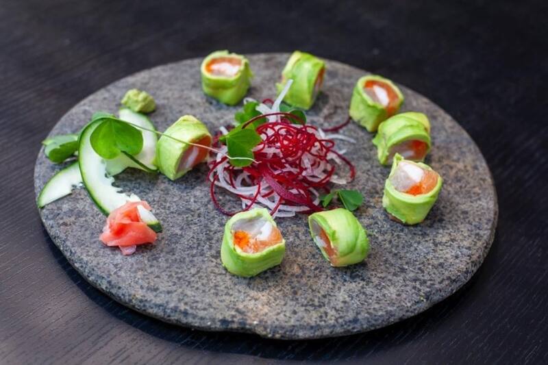 ¿El resultado de eso? Delicias como el kinoto maki ($10.900), uno envuelto en salmón ikura y gel de kinoto con camarón, palta, wakame y cebollín, o el hokkaida maki ($10.900), que encima lleva erizo e ikura, relleno de pescado fresco del día, ají verde y cebollín.