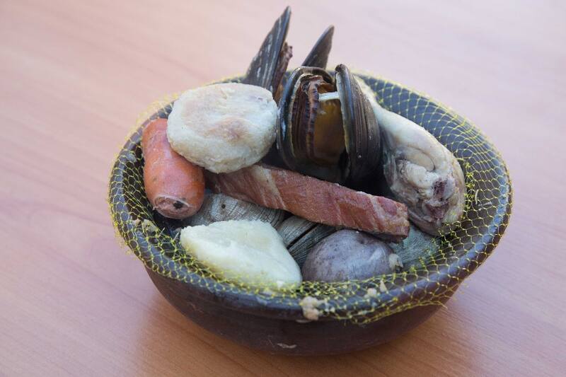 Elije el pulmay, maravilla de caldito especial para el frío, que trae costillar y longaniza ahumadadel sur, papas chilotas, pollo, cholga, choritos, almeja, milcao (la mezcla de papa que se ralla, se estruja se le saca y se mezcla con una papa cocida) y chapalele, de harina y papas cocidas.