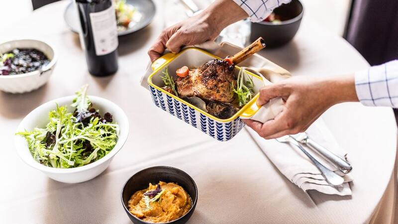 O el garrón de cordero ($ 8.990), que es el garrón trasero de cordero de Puerto Natales, asado con verduras como pimienta, cebolla, tomate, ajo, zanahoria, laurel y aceite de oliva extra virgen.