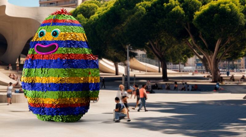 Entre ellas una bola disco en plena calle, una colorida piñata gigante y la esculturas gigantes del artista Only Joke.