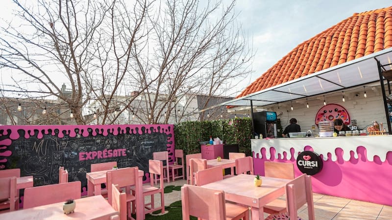 Al igual que el estilo del lugar, que tiene mobiliario con forma de dona en la terraza del primer piso y una sala de peluche ideal para tomarse fotos.