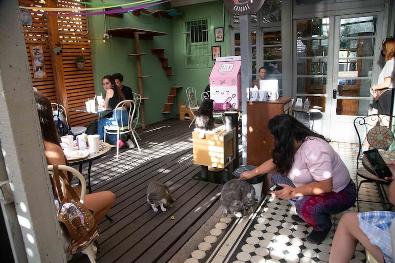 Se trata del primer cat café de Sudamérica, donde puedes compartir y jugar con gatos.