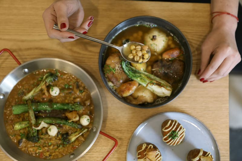 Además de platos de fondo como las carrilleras y arroz caldoso ($ 10.500), cocinadas en una salsita de Pedro Jiménez, variedad de uva blanca española, demiglace, cebollas encurtidas y cebollas crispi para darle crocante.