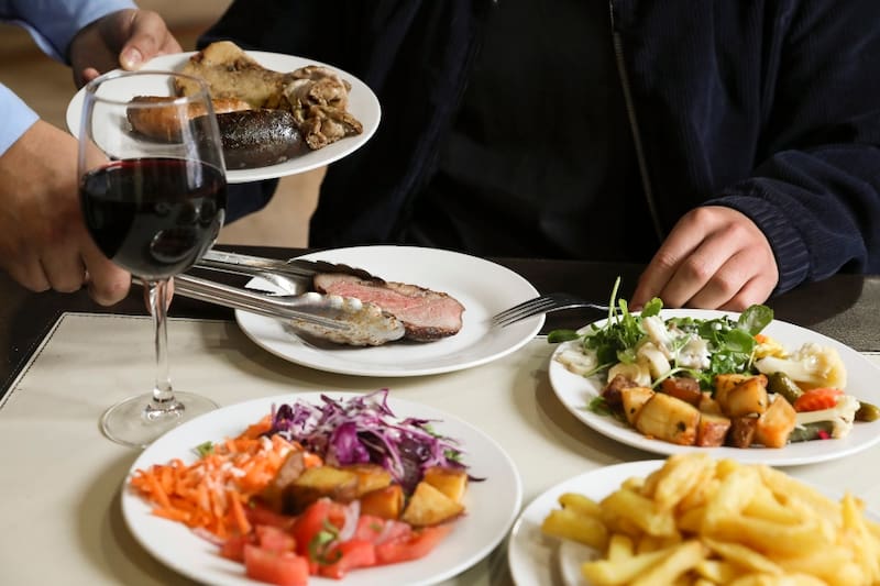 Así, puedes disfutar de una selección de cortes argentinos, que llegan a la mesa en rondas, como bife ancho (lomo vetado), bife angosto (lomo liso), corazón de cuadril (asiento), colita de cuadril (punta picana), flat iron (punta paleta) y asado de tira, entre otros.