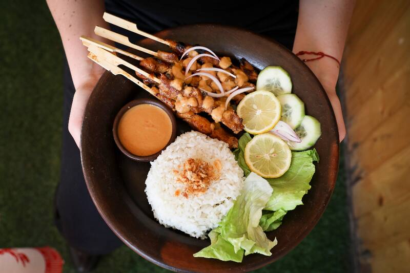 Además de platos de fondo, como Nasi sate ayam ($ 9.900), que es un satay, brochetas de de pollo acompañado con salsa de maní y arroz blanco; y el Nasi goreng kampung ($ 9.900), arroz frito muy típico del sudeste asiático, que viene con trozos de pollo, huevos y verduras.