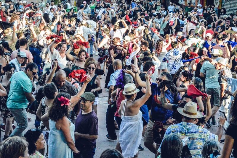 Una gran fiesta al aire libre, en pleno espacio público, gratuita y con un puñado de grupos cuequeros en vivo haciendo bailar a los asistentes.