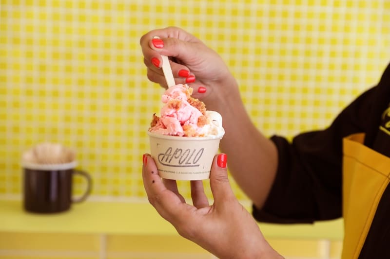 De seguro, si vas caminando por la vereda sur de Av. Providencia, a la altura de Av. Los Leones, te llamará la atención la fachada de color amarillo flúor de Apolo la heladería 100% vegana.