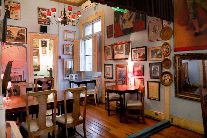 Justo al lado, aunque en la misma construcción, funciona el restaurante del mismo nombre, uno con diferentes salones bautizados con nombres de vecinos del barrio y llenos de antigüedades y objetos con historia para quedar viéndolos por horas.