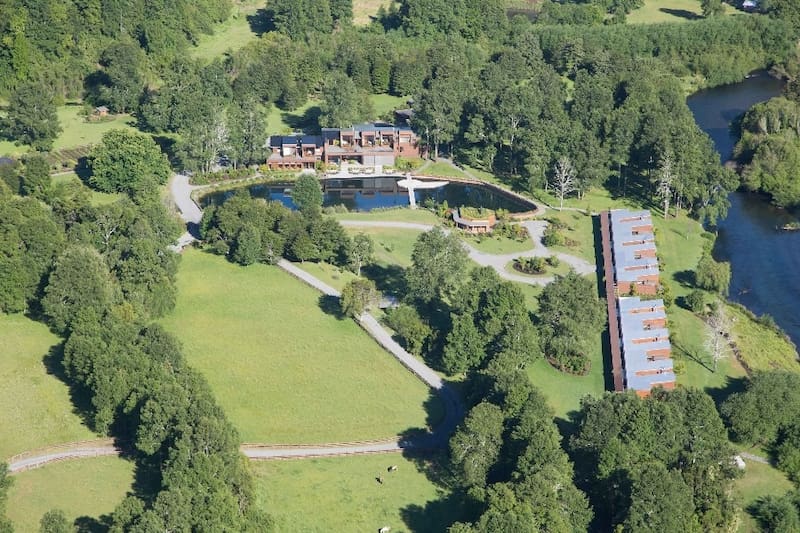 Sus instalaciones de madera de lenga están en medio de un parque de 23 hectáreas, a orillas del río Liucura, que se puede ver y escuchar desde las habitaciones.