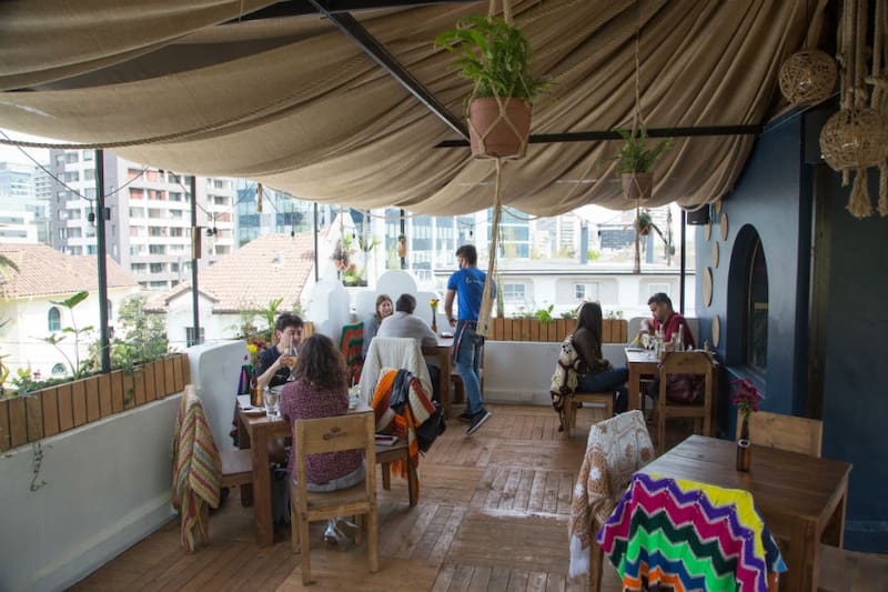 En esta tranquila calle se instaló en un edificio de tres pisos con salones llenos de coloridos murales y con un increíble rooftop con vista al cerro San Cristóbal.