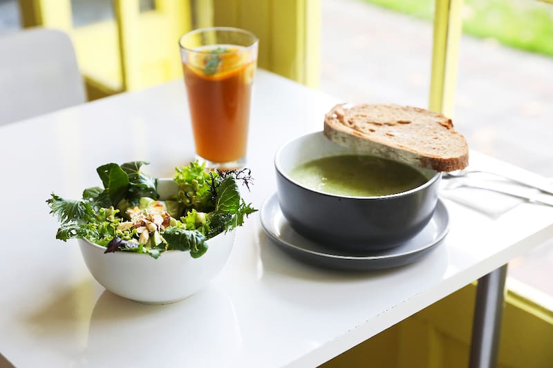 O la sopa del día ($ 3.500), que puede ser una opción vegana, de maní por ejemplo, o choclo con albahaca.