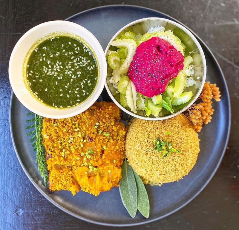 Puedes probar o el carpaccio ($ 7.800), de betarragas y tofu apanado. O el ceviche de plátano ($ 7.800), hecho en base a plátano, cochayuyo, camote asado, cebolla morada, choclo peruano, cilantro, canchitas y lechuga, aderezado con una leche de tigre vegetal.