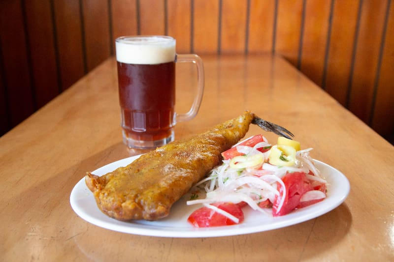 Además de opciones de la carta, que se anuncian en pizarra a la entrada del local, como el pescado frito ($ 6.000 más acompañamiento), la “pescá” que hace con un batido aireado, imposible más crujiente, y que puedes pedir con ensalada chilena, por ejemplo.