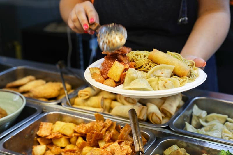 Uno donde lo que lo que más llama la atención es el mostrador caliente con los platos que se ofrecen ahí, todas preparaciones tradicionales de Taiwán y China y que además son veganas.