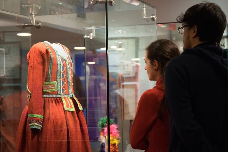 Tiene varias exposiciones con objetos patrimoniales que abarcan desde la época precolombina hasta la década de 1970.