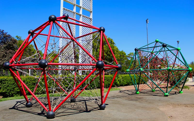 Ahí, apenas ingreses te encontrarás con una zona con los clásicos resbalines y columpios, pero también con unas adrenalínicas redes para trepar y unos coloridos balancines.