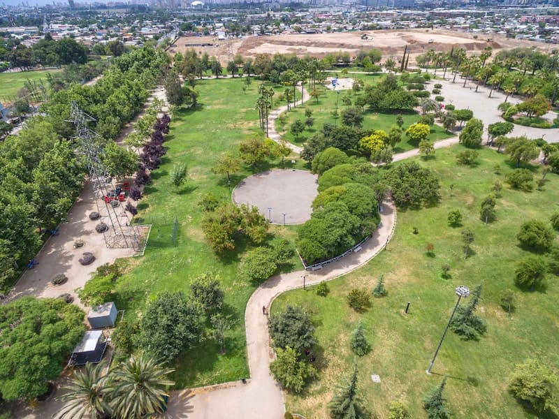 Luego, destaca por su superficie, 50,4 hectáres en total, las que lo convierten en el cuarto parque más grande de Santiago, después del Metropolitano, el Padre Hurtado y el O’Higgins.