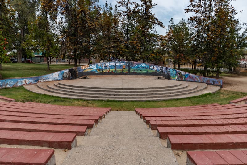 Otra de sus características es que está diseñado con terrazas de distintos niveles, es decir que los asientos del anfiteatro van en escala hacia abajo para que, así, todos puedan ver bien los espectáculos, ya sea sentados en el pasto o en los bancos de cemento del lugar.