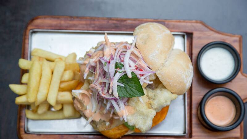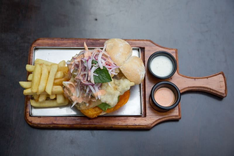 Uno de los sánguches imperdibles ahí es el de "pejerrey" ($ 5.290), que lleva una buena cantidad pejerrey arrebozado, lechuga, camote, palta y salsa acevichada, hecha con cebolla morada, cilantro, limón y vinagreta.