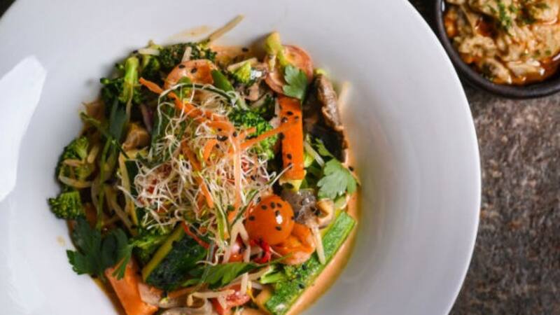 ¿Qué alternativas hay? El "pad thaï vegetariano" ($12.900), por ejemplo, que es el gran clásico de la gastronomía tailandesa y, que en este caso, lleva un salteado de fideos de arroz, tofu, dientes de dragón, cebollín con crumble de maní, un ají, guindilla y limón de pica.