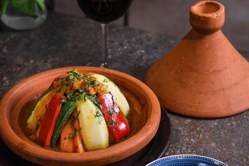 Y por último está el "tagine vegetariano" ($11.500), que son verduras cocinadas lentamente en el tradicional tagine de greda (en la foto) y perfumadas con limones confitados y azafrán.