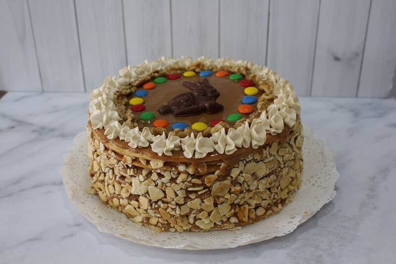 Y que además tiene una torta de hoja ($ 24.500 para 15 personas), de milhojas quebradizas y manjar casero con nuez, que es especial para este Domingo de Resurrección, por que viene decorada con un conejito de chocolate.