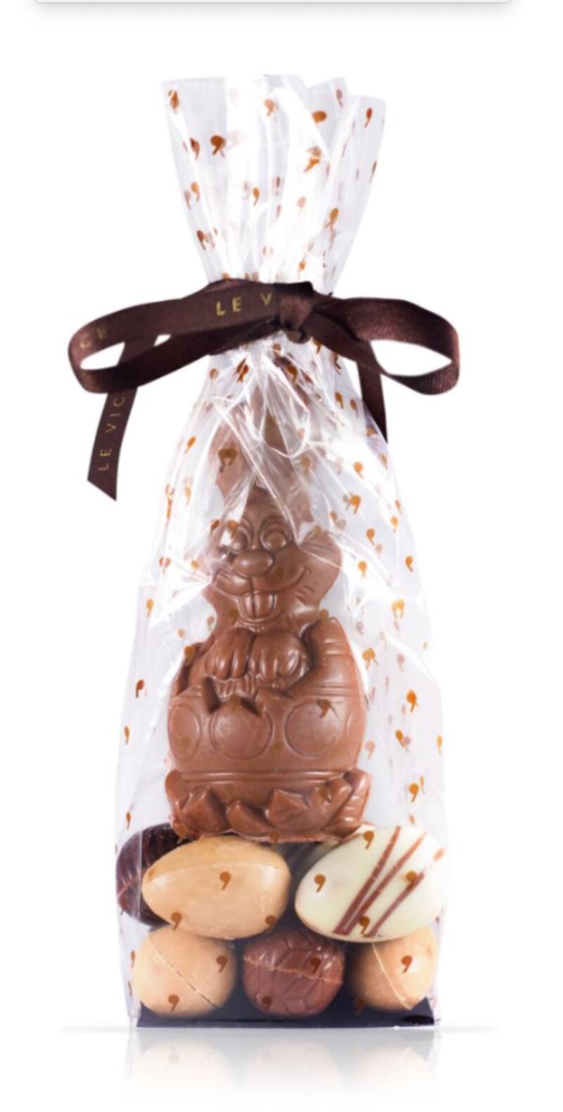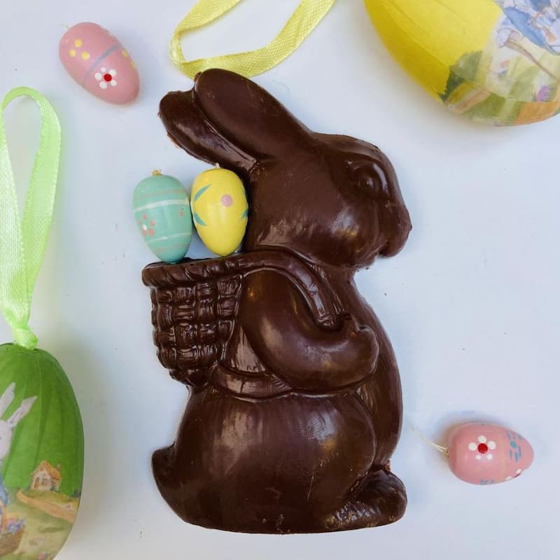 Y si se trata de opciones bien golosas, prueba el conejo ($ 9.500), de 150 gramos de chocolate de leche, de esos que te costará partir por lo macizo, o la caja de huevitos rellenos ($ 15.900), con una selección de sabores como los de chocolate de leche rellenos de praliné o de crema de caramelo.