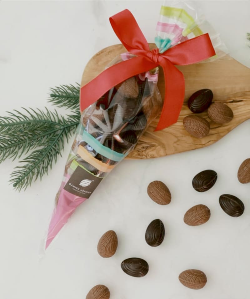 Damien Mercier son los chocolates de tradición belga, que para estas fechas tiene opciones limitadas, con huevitos y conejitos que también puedes pedir a domicilio.