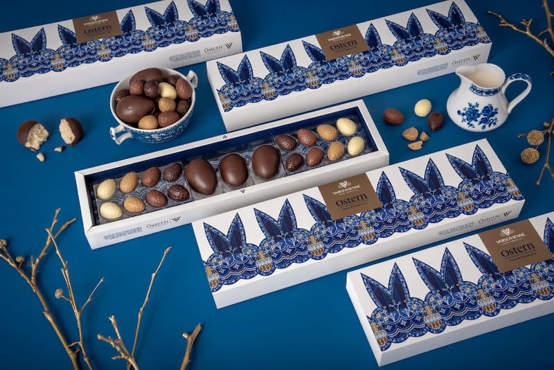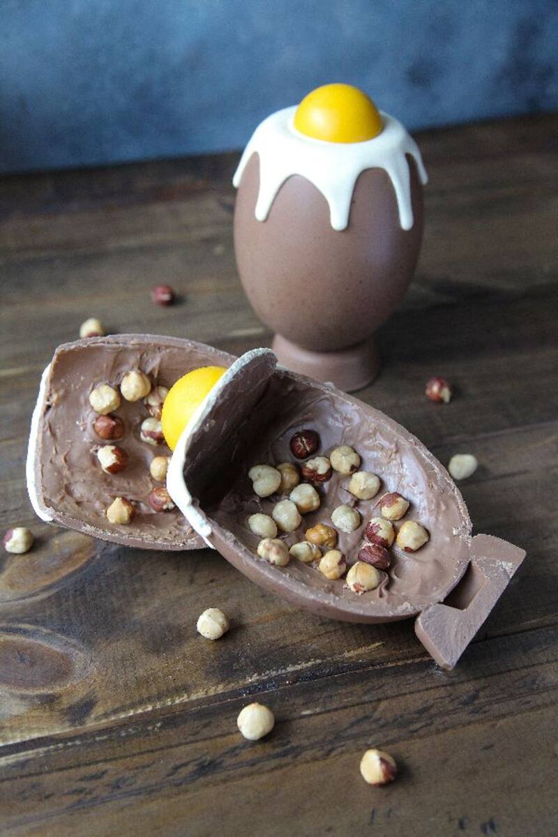 ¿Cuál de todos encargar? La bolsa de huevos surtidos ($ 7.900), que viene con huevitos de chocolate macizos de 36% de cacao o la caja de huevos rellenos ($ 11.900), que son de leche con praliné de avellanas, chocolate rubio con caluga o blancos con praliné de avellana por ejemplo.