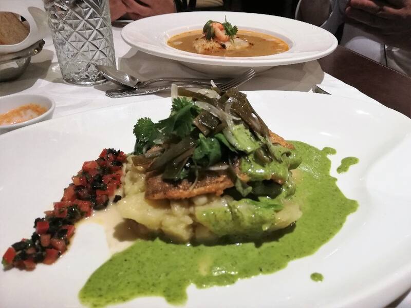 La carta hoy en el Bristol tiene entradas como los “locos en tres preparaciones”, que es un plato viene un chupe de locos gratinado al horno, con palta sobre papas nativas y acompañado con un triturado con quínoa en salsa verde ($ 12.500).
