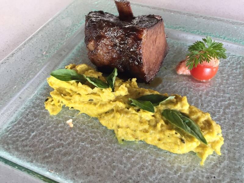Otro imbatible, es el "estofado de cola" ($ 8.700), una cola de vaca cocinada lentamente con vino tinto, que viene con porotos granados, sofrito de chancho ahumado y cebolla en escabeche. Una delicia total.
