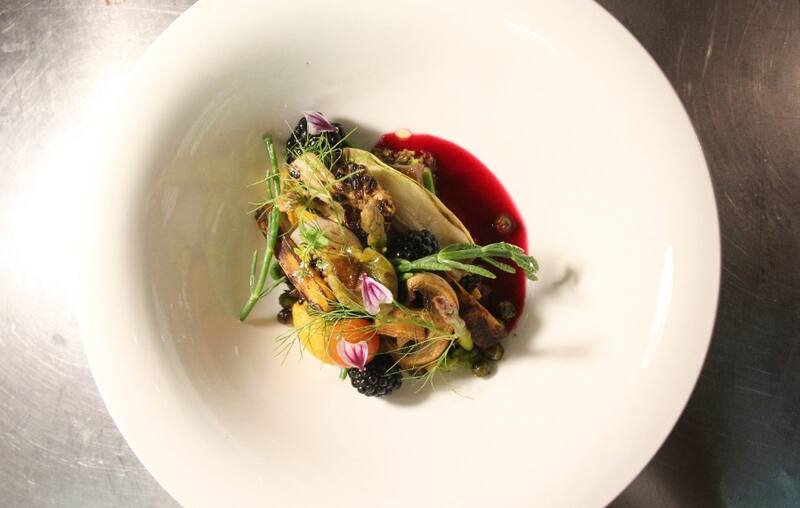 Luego, de fondo, habrá lechón deshuesado cocinado al palo (de boldo) acompañado de puré de camotes al rescoldo, repollos y ciruelas asadas. Eso, además de una salsa grimonata con limones encurtidos.