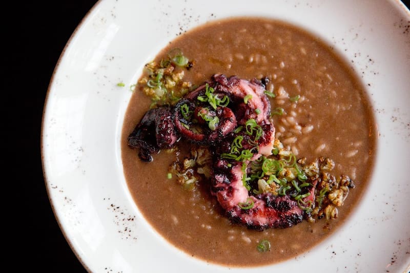 Como plato de fondo puedes escoger entre un sabroso pulpo a la parilla -un hit en Aires de Máncora-, pescado a lo macho y un clásico pero exquisito lomo saltado.
