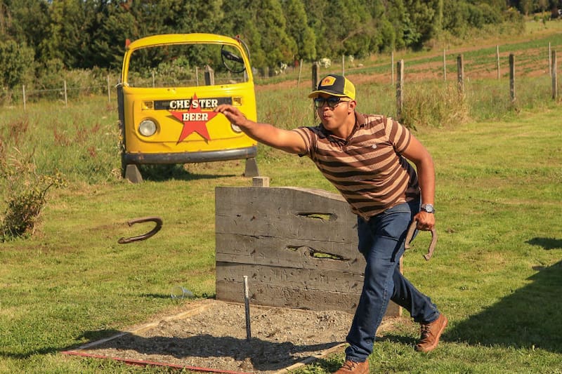 En 2011, el estadounidense Gerek Way -que una vez vino de viaje a Puerto Varas y se quedó para siempre- abrió una cervecería artesanal (Chester Beer) camino a Llanquihue. Recién este año empezó a hacer tours hasta el campo, donde está enclavada: arriba de una van se parte desde la estación de trenes de Puerto Varas y se llega allá para hacer un recorrido de 45 minutos. En él se degustan los cuatro tipos que tiene la marca: entre otras, la stout “Obama Redemption”, una negra con toques de café y cacao, y la “Rustic 99”, más suave y dulce. Este sábado 27 se hará ahí, además, un campeonato de herradura, que se juega igual a la rayuela ($ 15.000 e incluye la cerveza).
