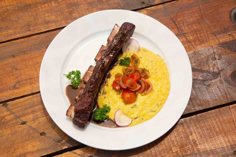 O el costillar a la chilena ($ 9.900), 400 gramos de carne adobada por doce horas en salsa de ají cacho de cabra, orégano y cerveza, acompañado de papitas aplastadas.