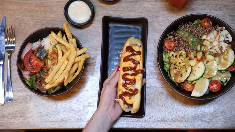 En el nivel -2 del MUT abrió este pequeño local de cocina vegana y callejera. Ojo con sus completos, bowls y platos caseros.