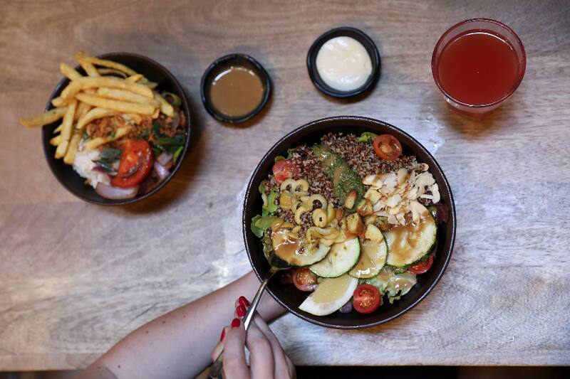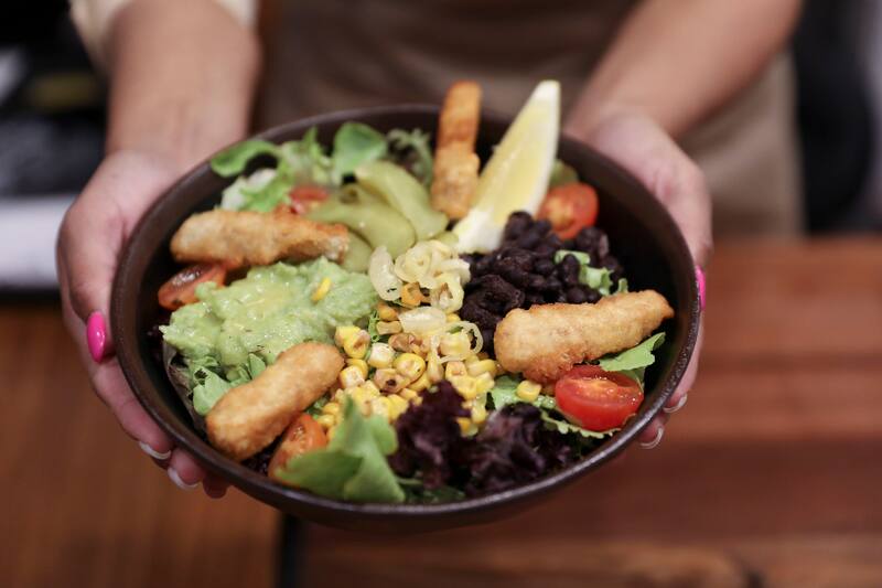 Por último, no te pierdas los bowl de ensalada de Alma Vegan Food, como el Oriente ($ 7.990), con una base de lechugas, falafel, tomates, champiñones asados, cebolla crispy, arroz integral y mayonesa de limón a la menta.