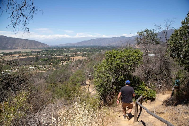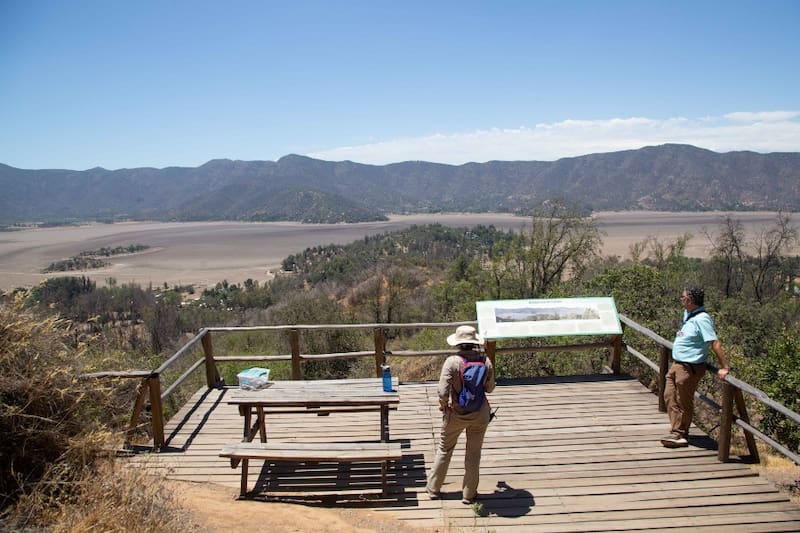 Lo mejor te espera al llegar a los dos miradores, a unos 500 metros sobre el nivel del mar, donde puedes hacer un alto y apreciar la inmensidad del lugar. El primero es uno techado y con mesas desde donde aprecias las cumbres del cordón: el colimahue, la mesata Altos de Cantillana, la quebrada La Palmilla y el cerro Horcón de Piedra.
