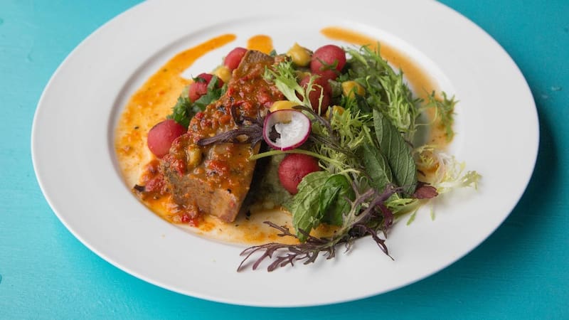 ¿Eres vegetariano? Prueba el "cremoso de mote" ($ 5.000), que viene con vegetales salteados como berenjenas, zapallo italiano, tomate cebolla acaramelada y un toque de menta.