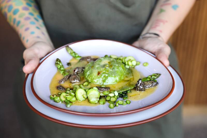Otras opciones son las pastas, como la de Jaiba ($ 16.500), pasta fresca, con jaiba limón y grana padano; o el Raviol solar ($ 13.900), de ricota, con una yema que cae apenas lo partes con el tenedor y espinaca.