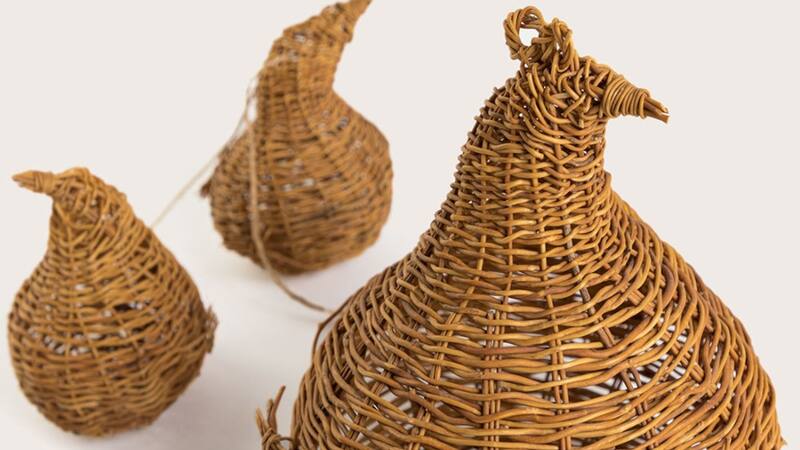 Alfombras de nudo de lana de oveja hechas por mujeres del Seno del Reloncaví, fundas de cojín del misma lanaelaboradas por artesanos de Caleta Gutiérrez, cuelgas de pájaro de boqui pilpil de San José de la Mariquina, cestería en Quilineja de Chiloé y canastos de fibras vegetales son otras de las creaciones que encontrarás en esta venta de bodega.