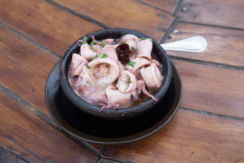 También la centolla ( desde $ 25.600), fresca, traída de la Patagonia; o los chipirones al pil pil ($ 15.800) ligeramente picantes, con un toque de ají cacho de cabra. Además de las angulas al pil pil ($ 21.000), de sabor delicado, manjar de dioses.