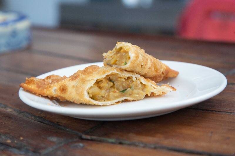 Es decir, puedes partir con las empanadas fritas de mariscos ($ 8.000 las dos), de masa delgadita, crujientes recién hechas, con sólo pino de mariscos; o los locos al olivar ($ 18.600), que son láminas de locos aliñadas con jugo de limón y perejil, que vienen acompañadas de mayonesa de olivas moradas.