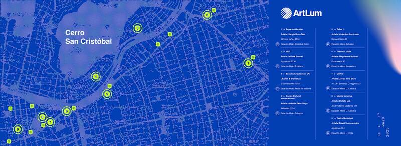 En esta época, cuando cada día hay menos horas de sol y la oscuridad predomina sobre la luz, pareciera que el espíritu de la ciudad también se somete a la penumbra. Las actividades se reducen, la gente se guarda y las calles vacías se hacen todavía más hostiles. Una peligrosa somnolencia que ArtLum, el primer festival de arte lumínico de Santiago, quiere combatir con brillantes actividades nocturnas.