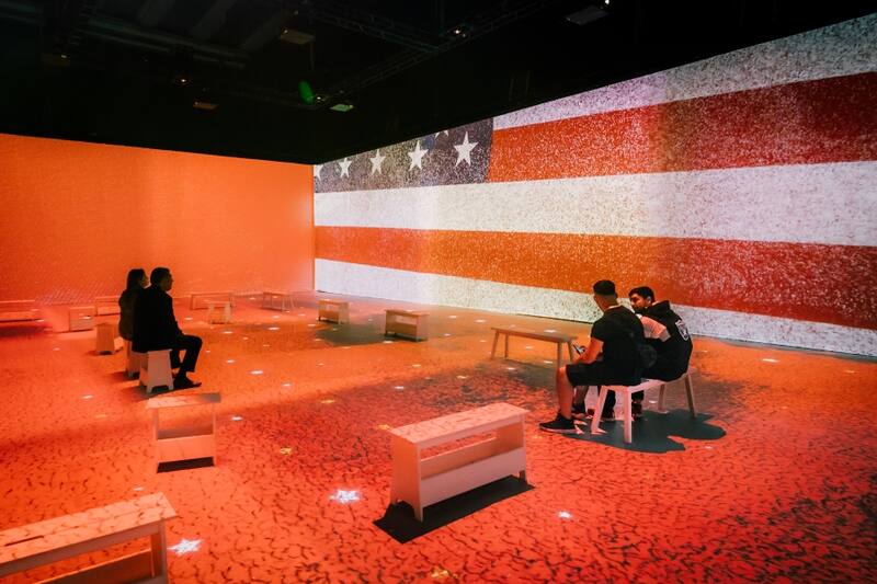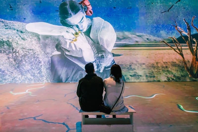 Sentados y envueltos en esta experiencia sensorial, los visitantes tienen la oportunidad de ver el mundo a través de los ojos de la propia Frida.